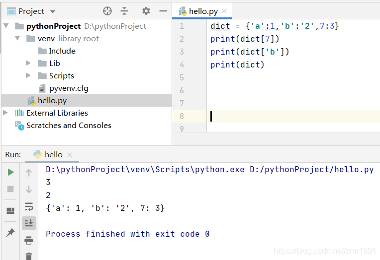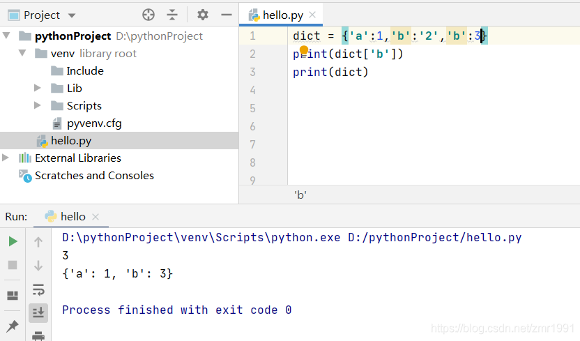 2: 사전의 각 키 값 key=>value 쌍에 콜론을 사용합니다: 분할, 각 키 값 쌍 사이에 쉼표를 사용합니다. 전체 사전을 괄호 {}에 포함합니다.