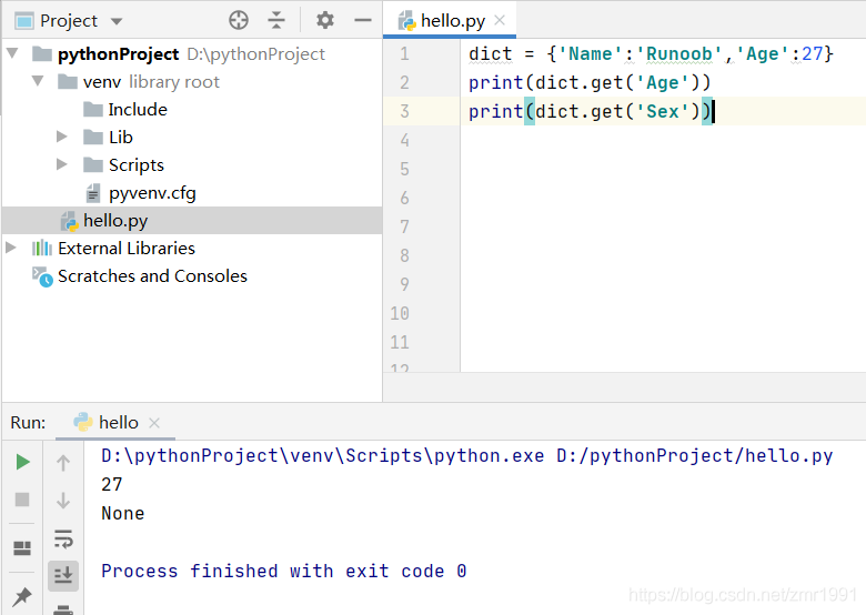 12: get(): 함수는 지정된 키의 값을 반환합니다. 값이 사전에 없는 경우 기본값을 반환합니다